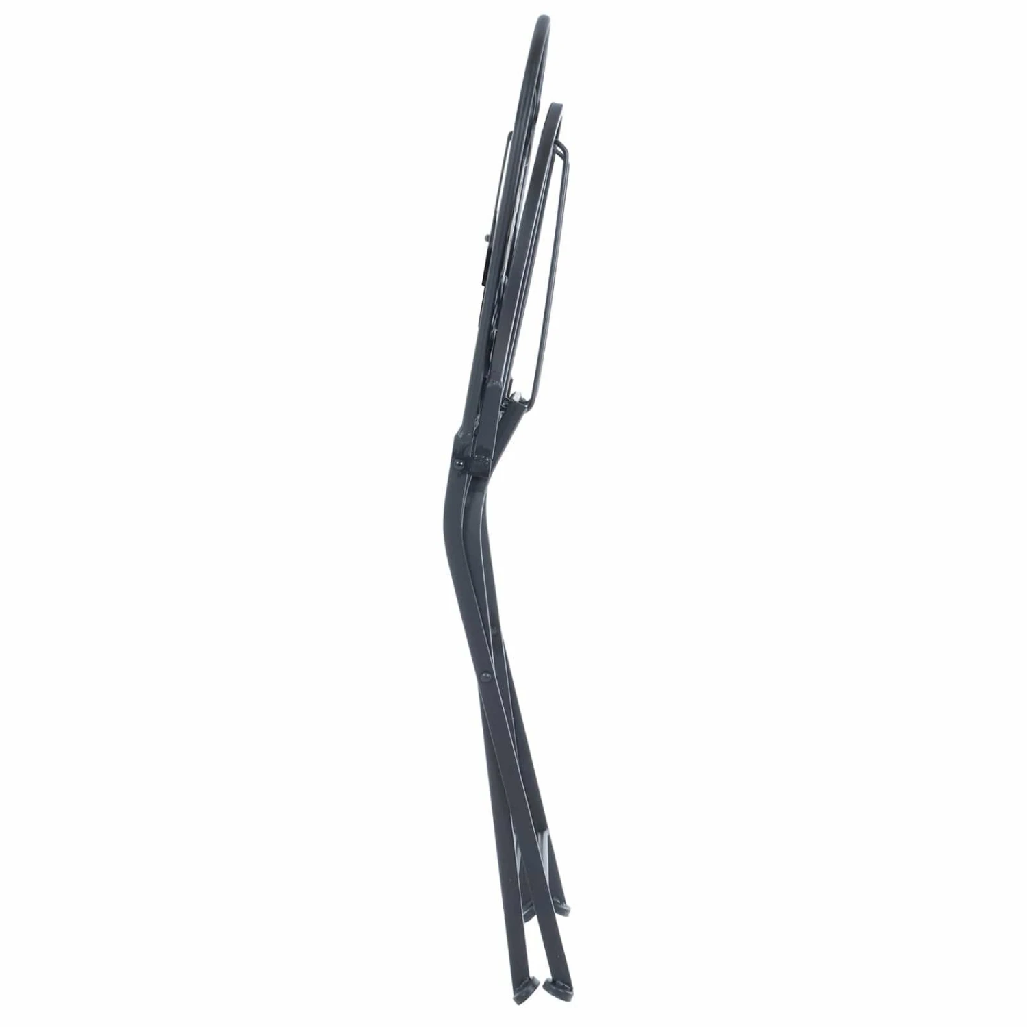 The mosaic design is carried through to the backrests of the 2 round seat chairs. Both chairs fold flat for easy storage.
