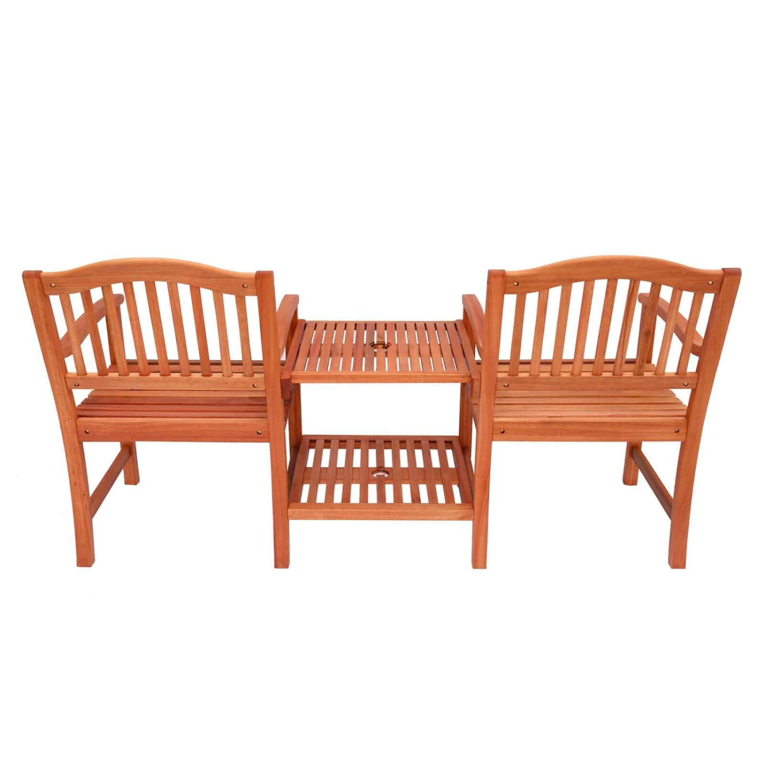 A traditional wooden love seat by Azuma for outdoor relaxation and refreshment!