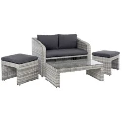 Azuma Varenna Garden Sofa Set Grey Rattan Coffee Table Stools