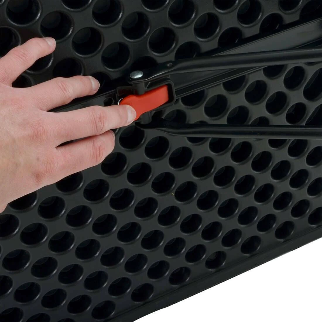 The vacuum moulded tabletop can be tilted to 2 different angles or kept level depending on how you like to use your laptop, press the red button on the underside of the table to slide the tabletop into the perfect position.