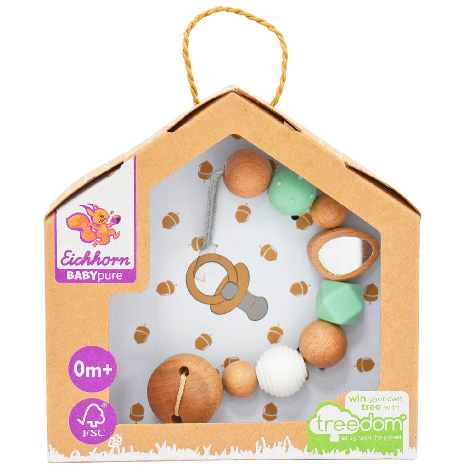 FSC 100% certified wood: only certified beech wood is used for the production of the dummy chain. A great gift idea for any newborn.
