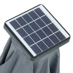 The garden parasol has a strong aluminium 48mm diameter pole with crank handle to raise and lower the canopy with ease. The sun umbrella comes in 2 parts plus solar panel. Some easy home assembly is required.