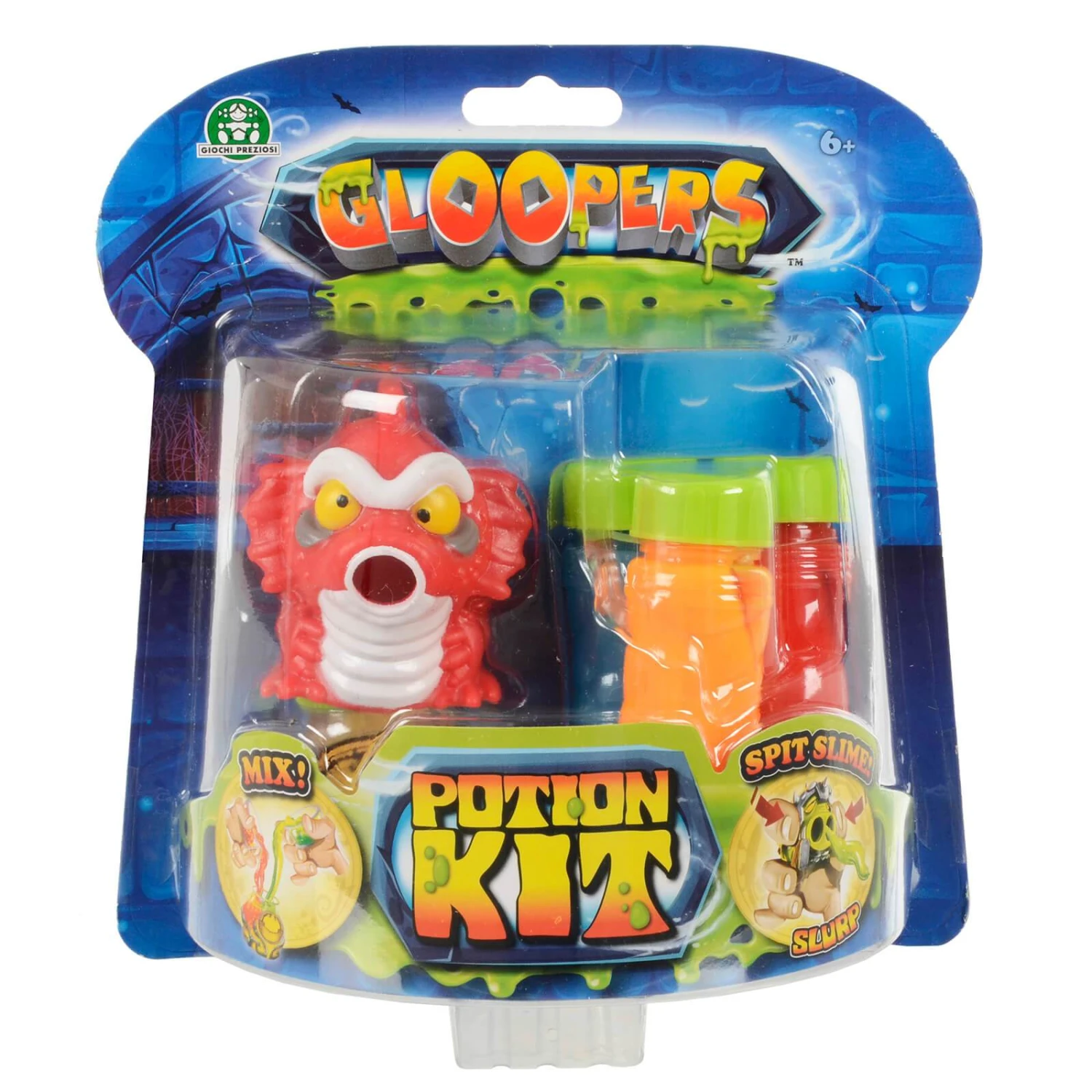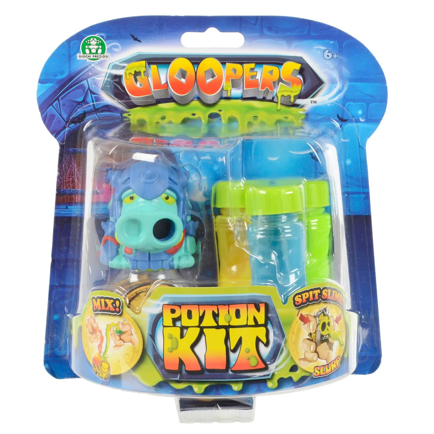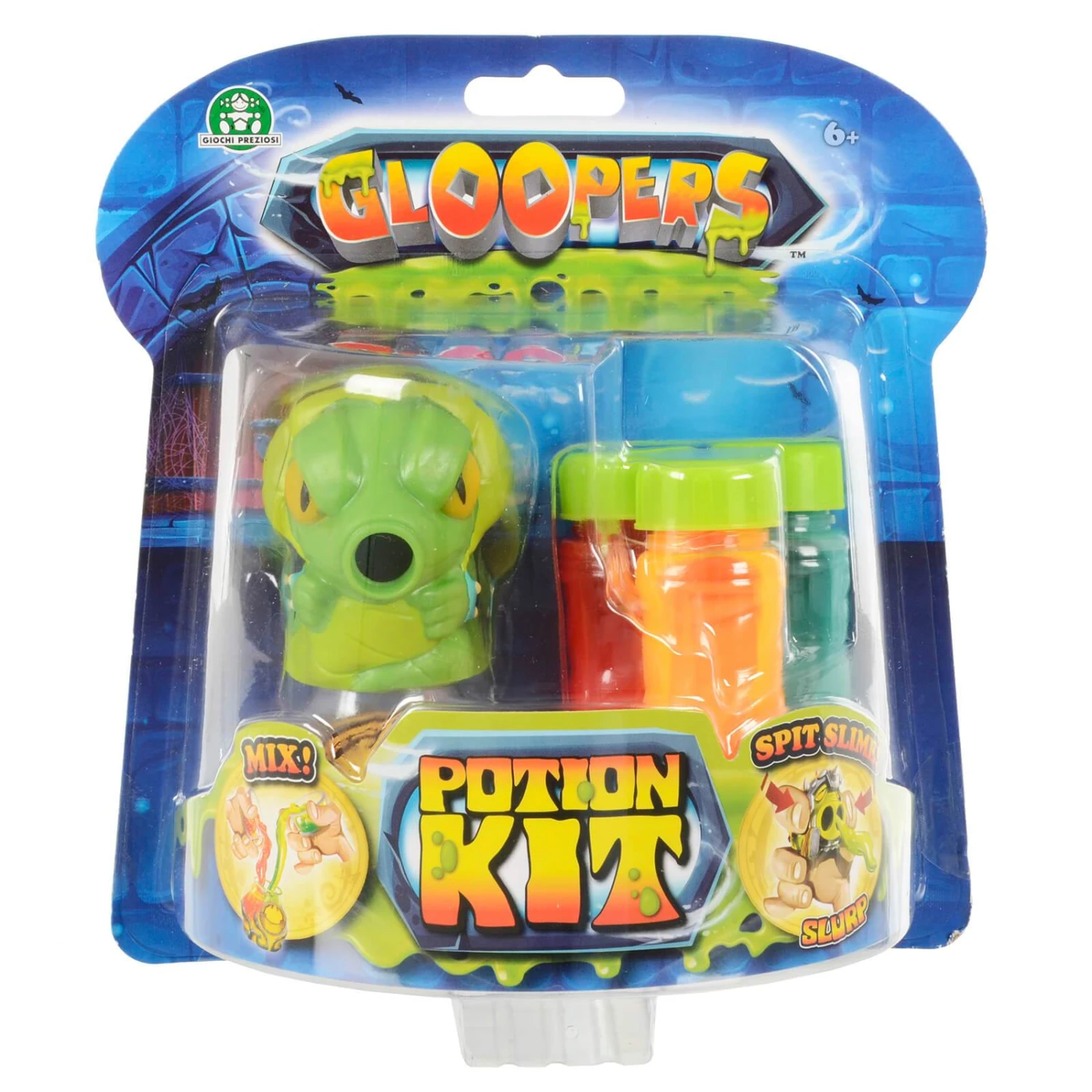Create your mix from the 3 tubes and write the potion name on the pot. Squeeze the Gloopers monster figure and watch it spit out the gloopy potion. Squeeze again for it to be sucked back in!