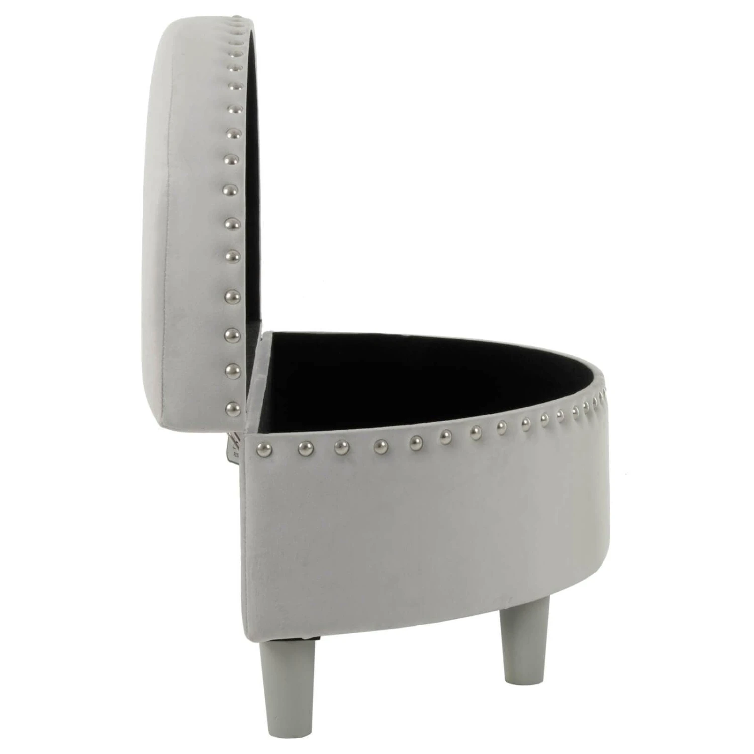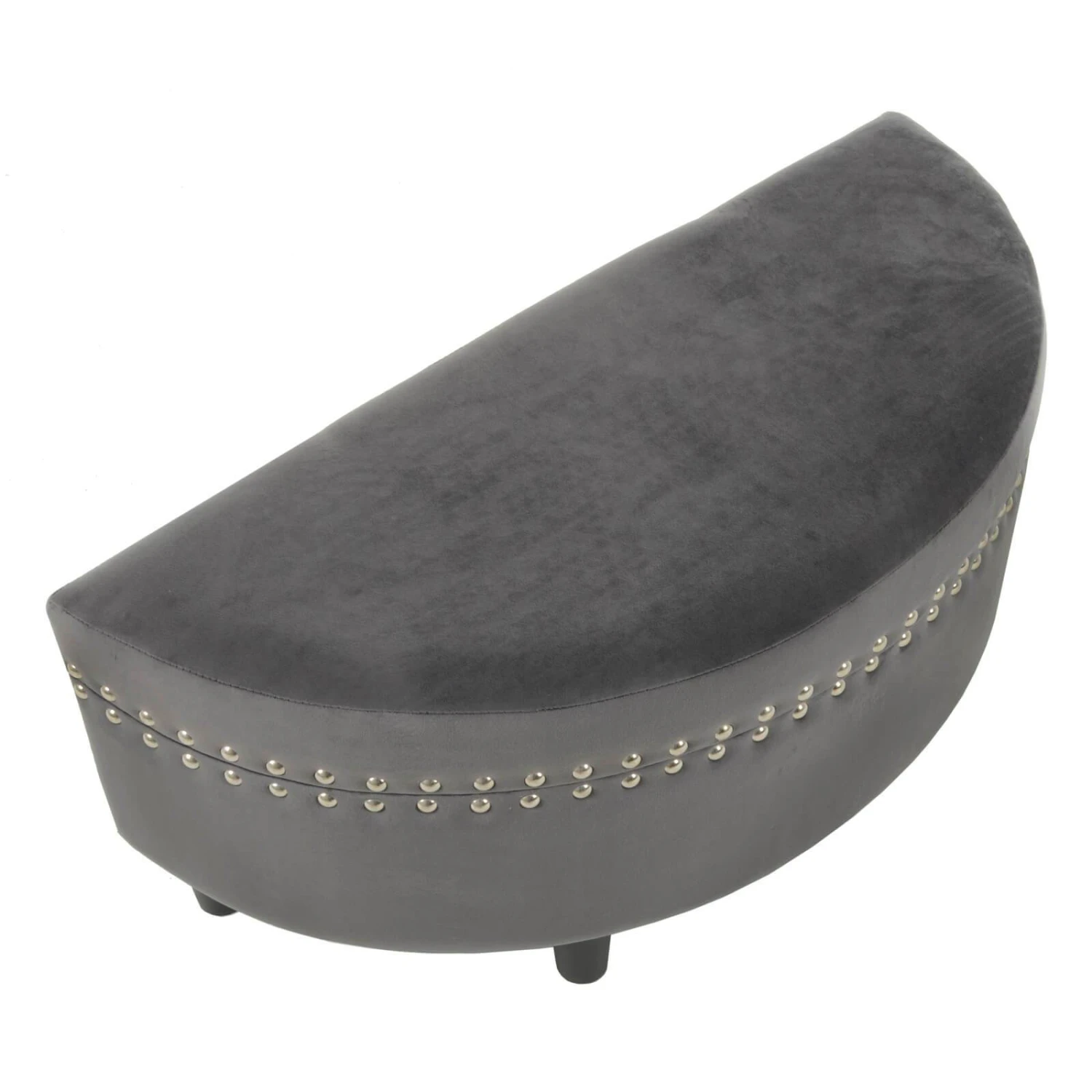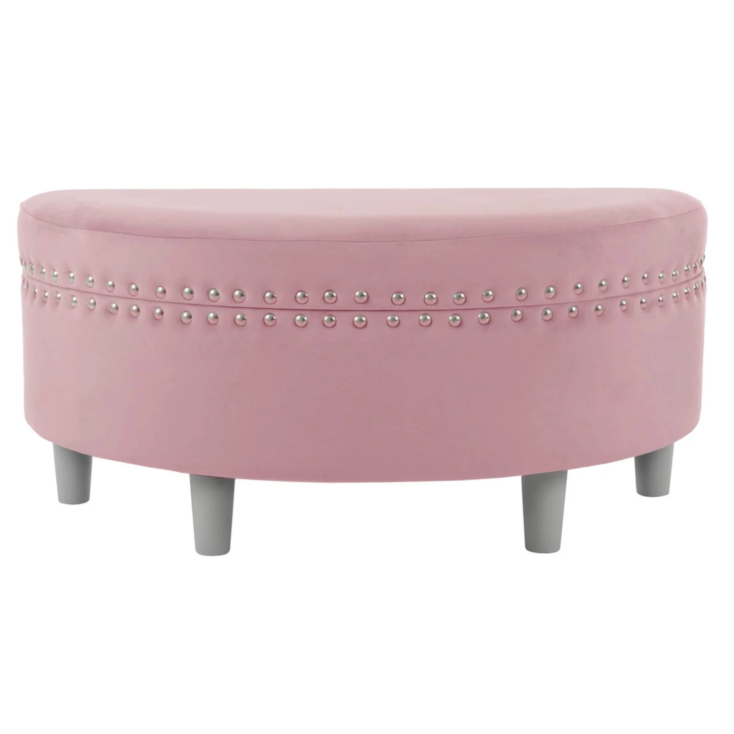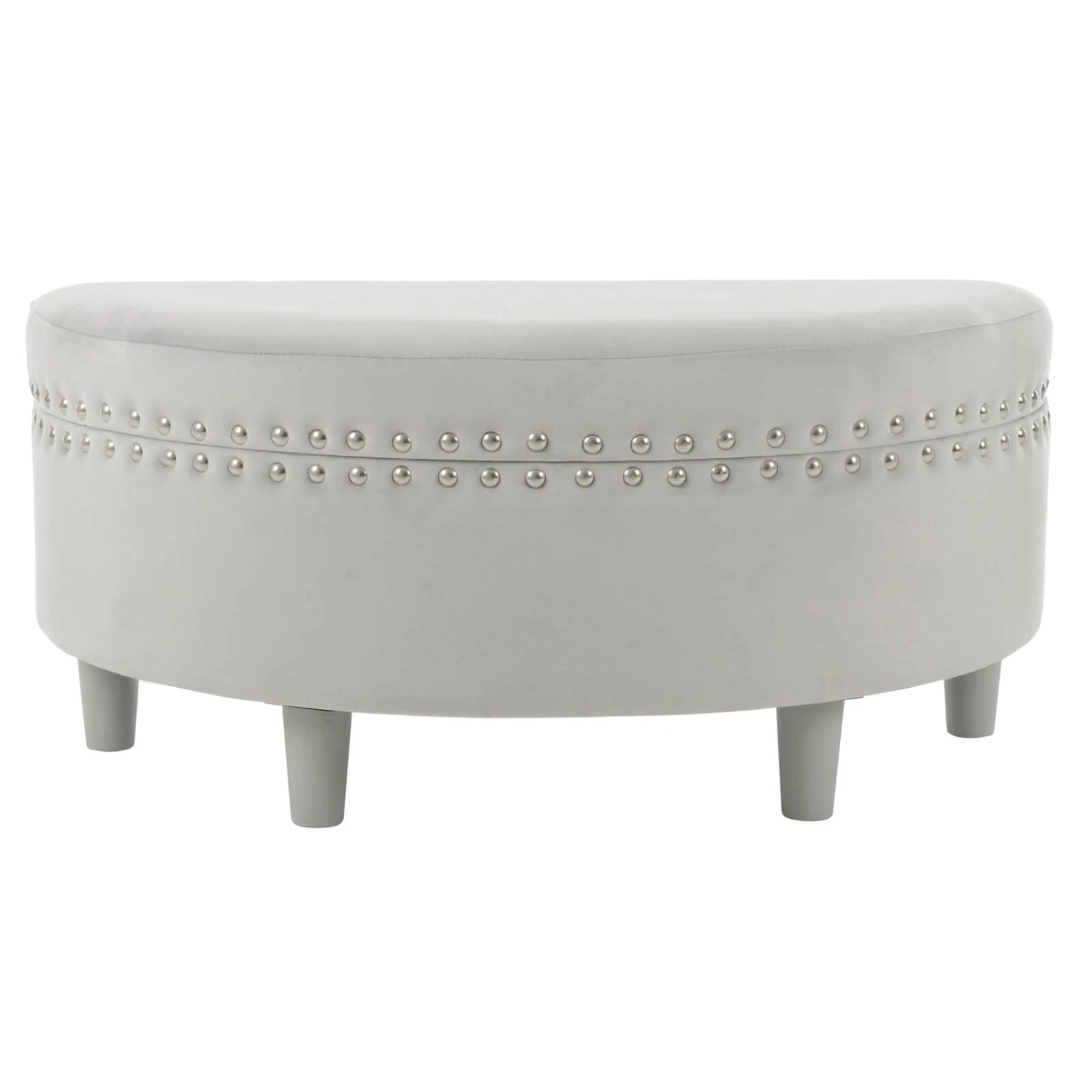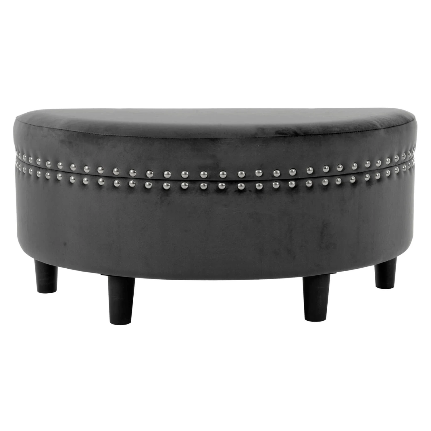The comfortable padded top makes this semi circle storage stool a handy extra seat when the family gets together. Upholstered in high quality, plush velvet with silver stud detailing and sturdy wooden legs, it’s the ideal storage solution for your home.