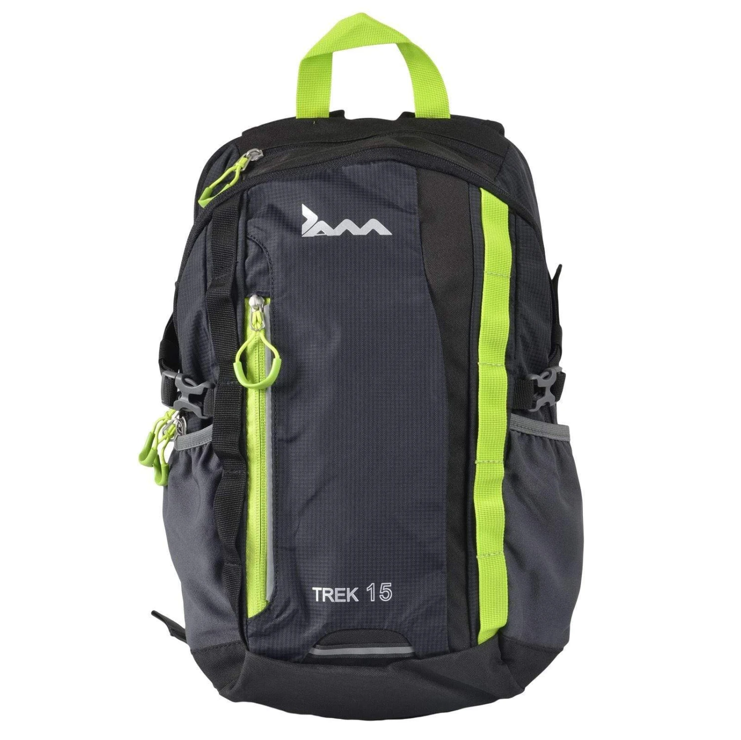 Lightweight and strong. This backpack is available in 2 sizes. 15L and 25L. The 15L rucksack weighs only 500g. The 25L option weighs 600g. Made from 420D Ripstop polyester + 600D Nylon this JAM Trek backpack is strong and hard wearing. Built to take the stresses of travelling, trekking and sports. It has a grab handle for hanging and is easily cleaned with a damp cloth