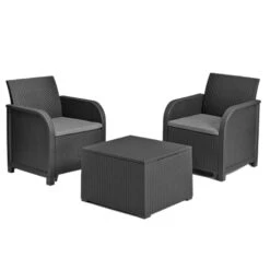 Keter Rosalie 2 Seater Balcony Set Storage Table Grey Rattan
