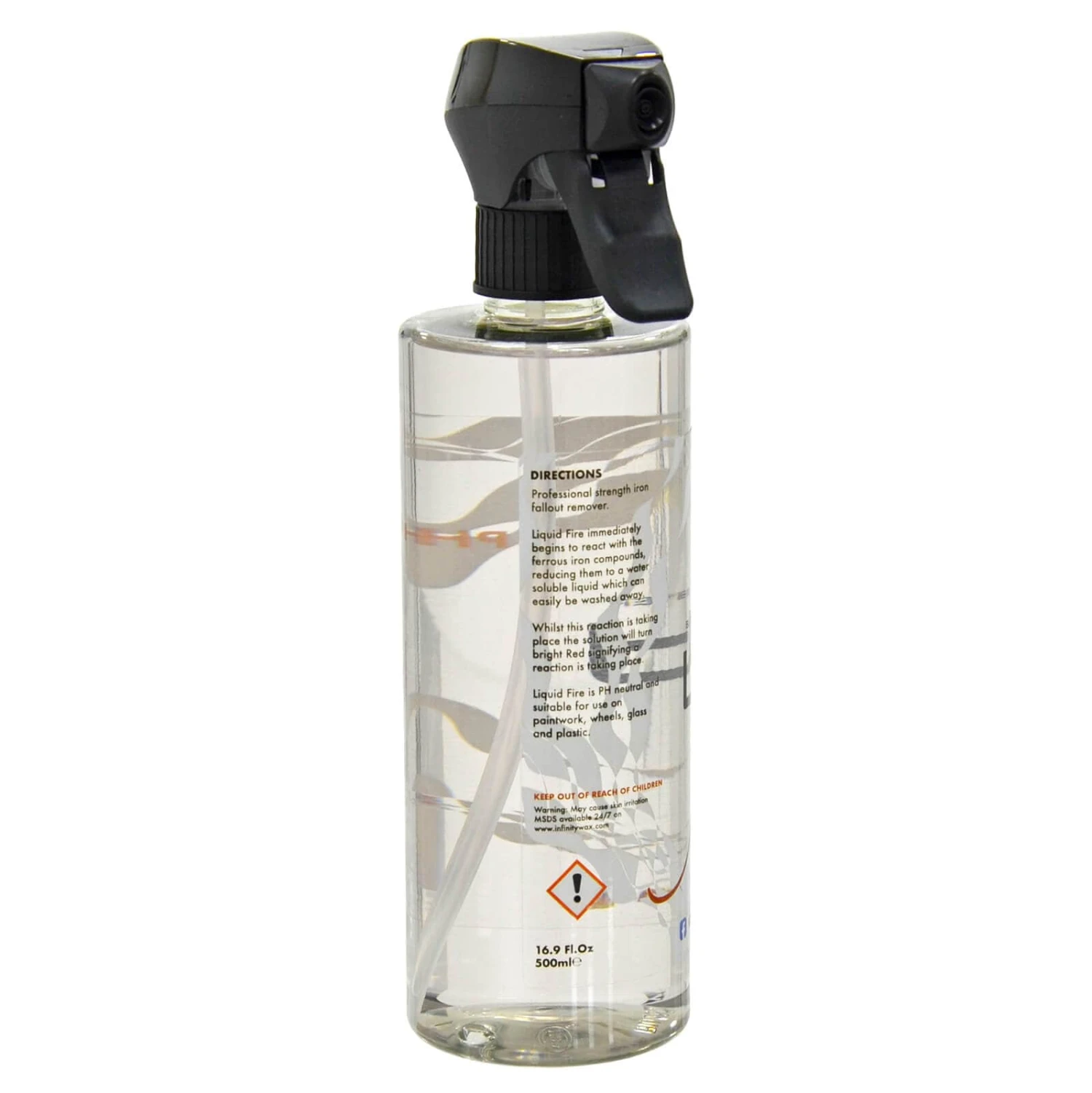 Liquid Fire car cleaner from Infinity Wax is a professional strength iron particle remover and wheel cleaner. It will tear through the worst contamination imaginable with ease, while also being PH neutral and safe for all surfaces.