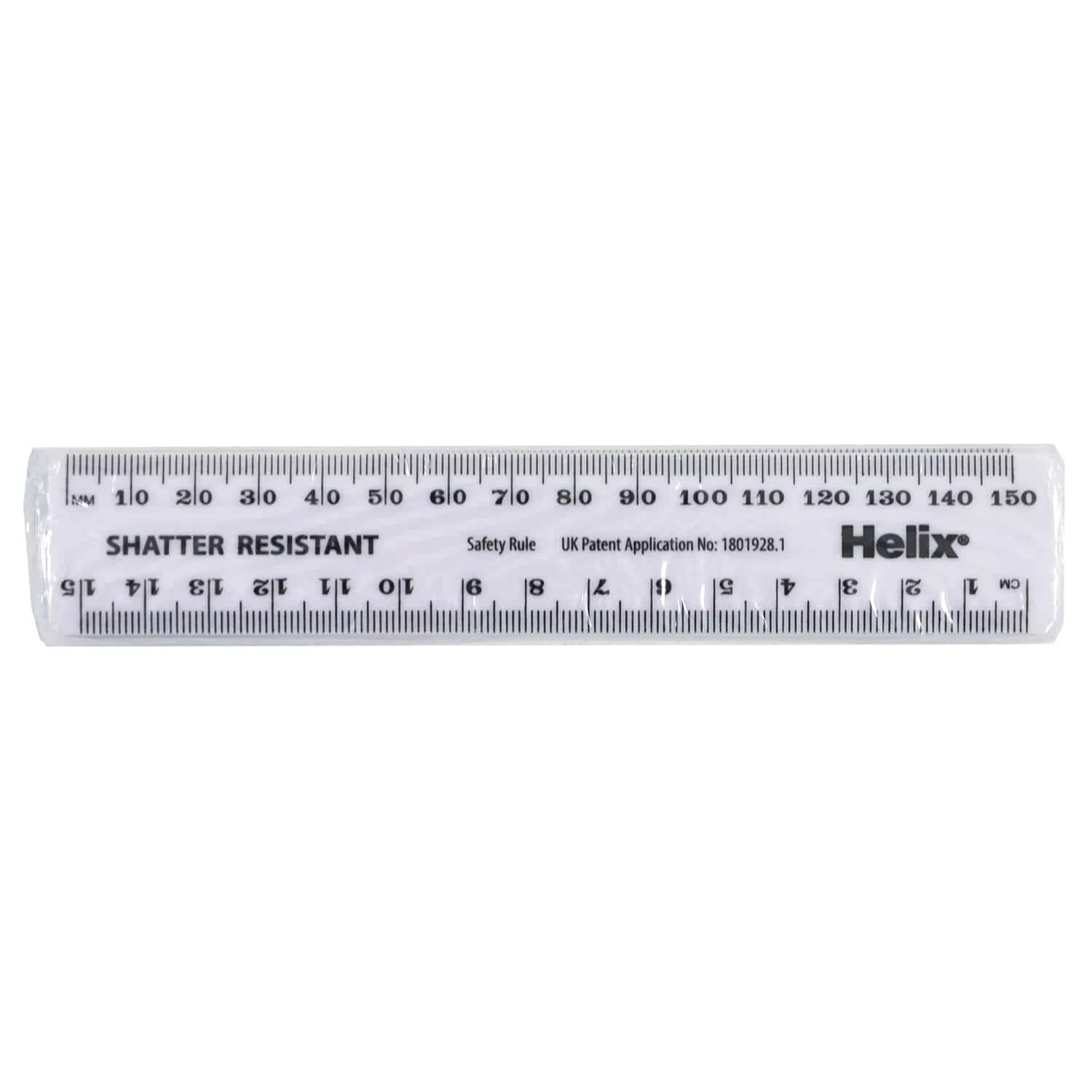 Bulk pack of 10 white 15cm rulers by Helix. Metric markings only on each edge. White shatter resistant safety rulers.