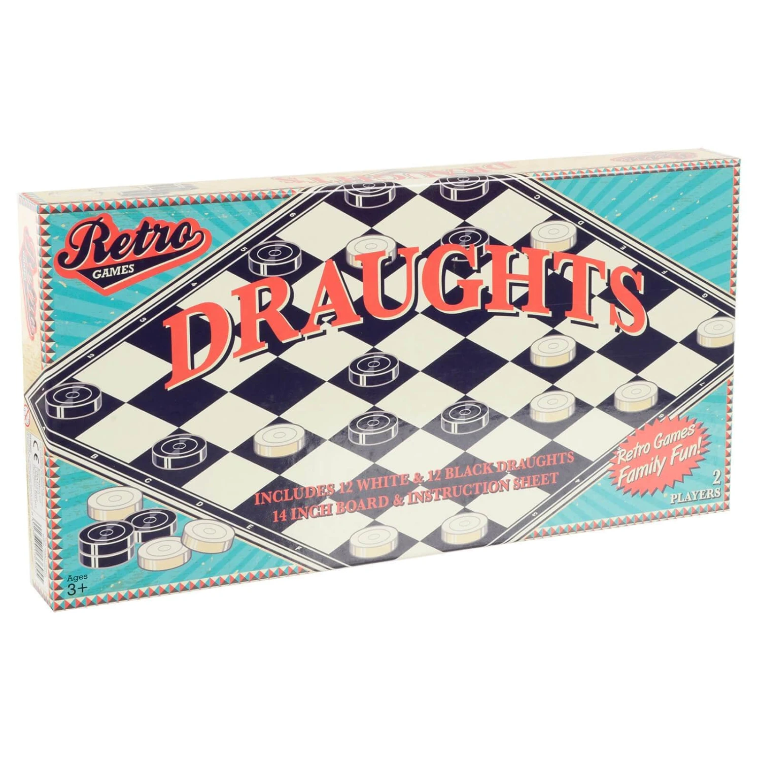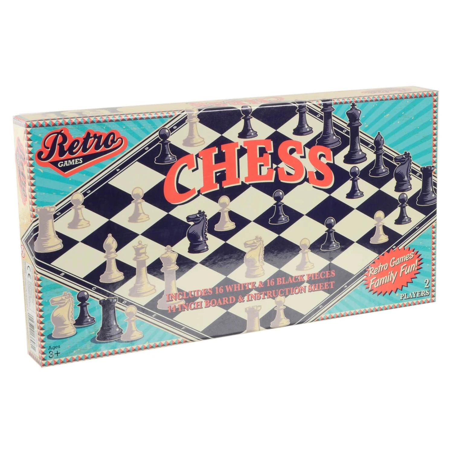 Test your strategy gaming skills with these Retro Board Games. Perfect for an evening away from the screen. The retro design box contains gaming pieces, 14″ checker board and instruction sheet. Choose from Chess or Draughts. For 2 players age 3+