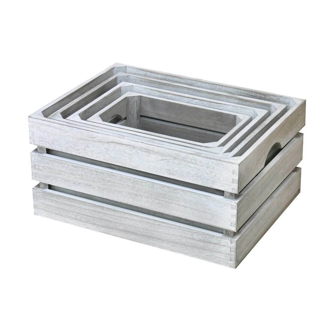 Set Of 4 Nesting Wooden Storage Boxes Crafts Wedding Hampers