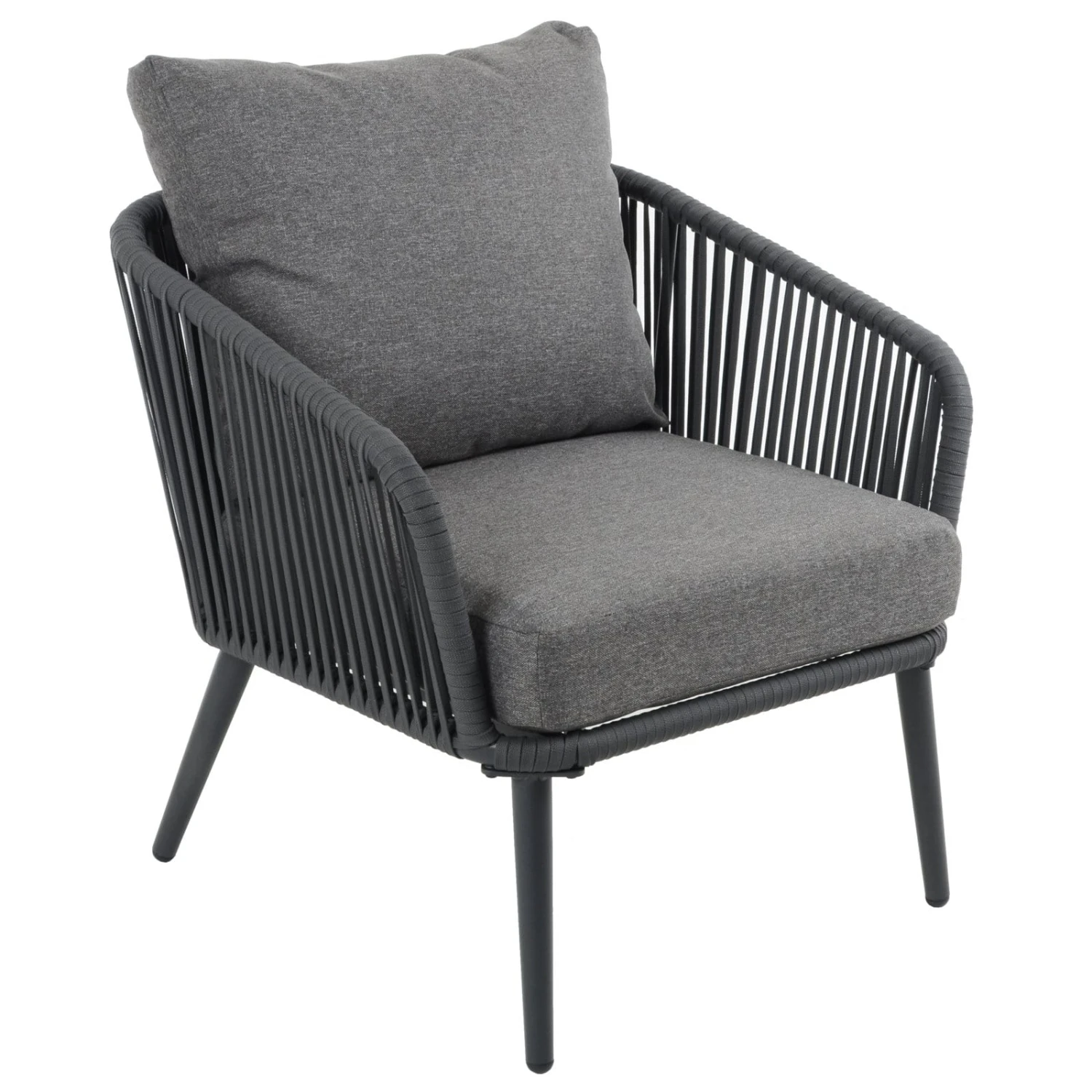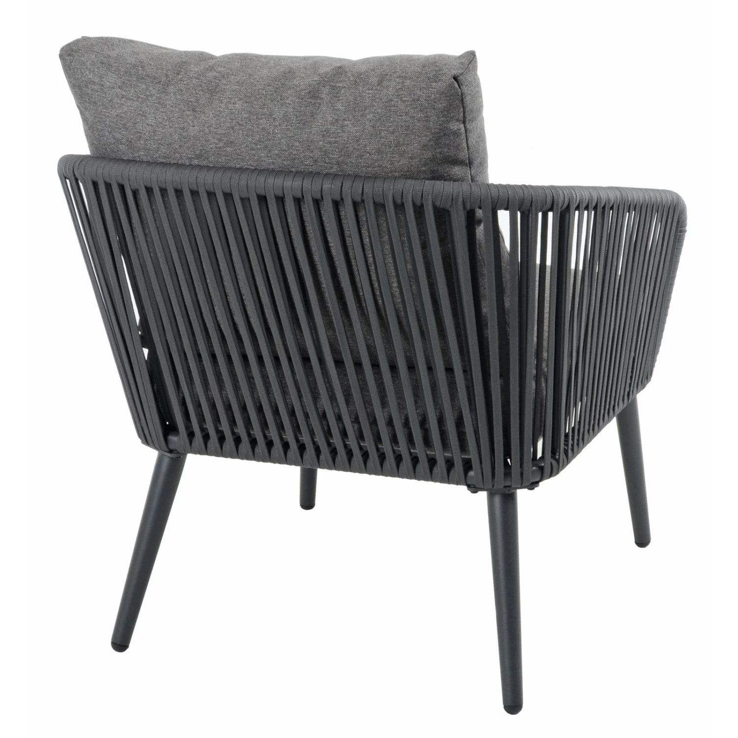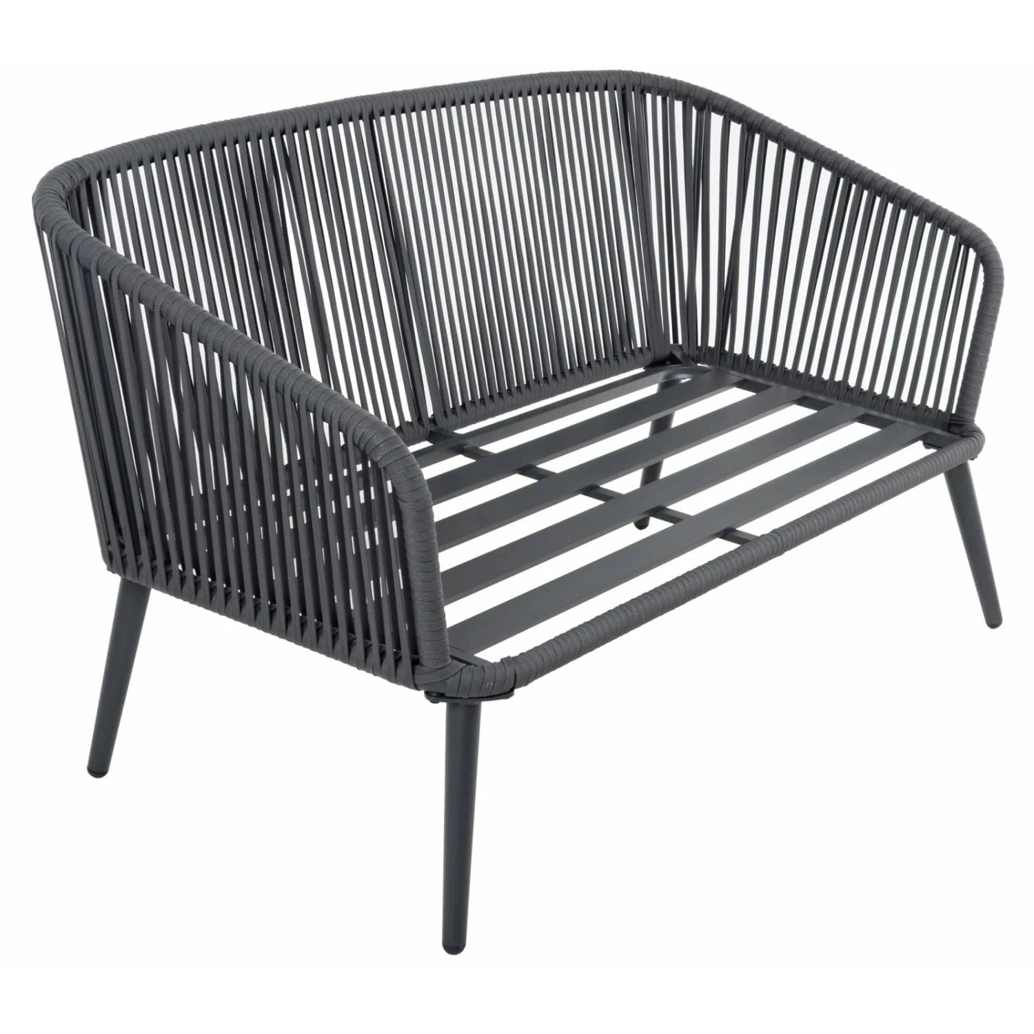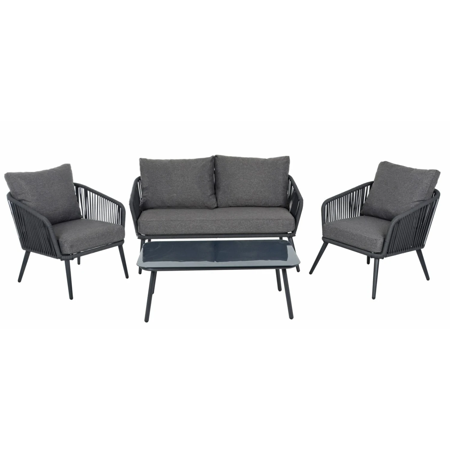 Teramo Garden Sofa Set Black Metal String Seats Glass Table