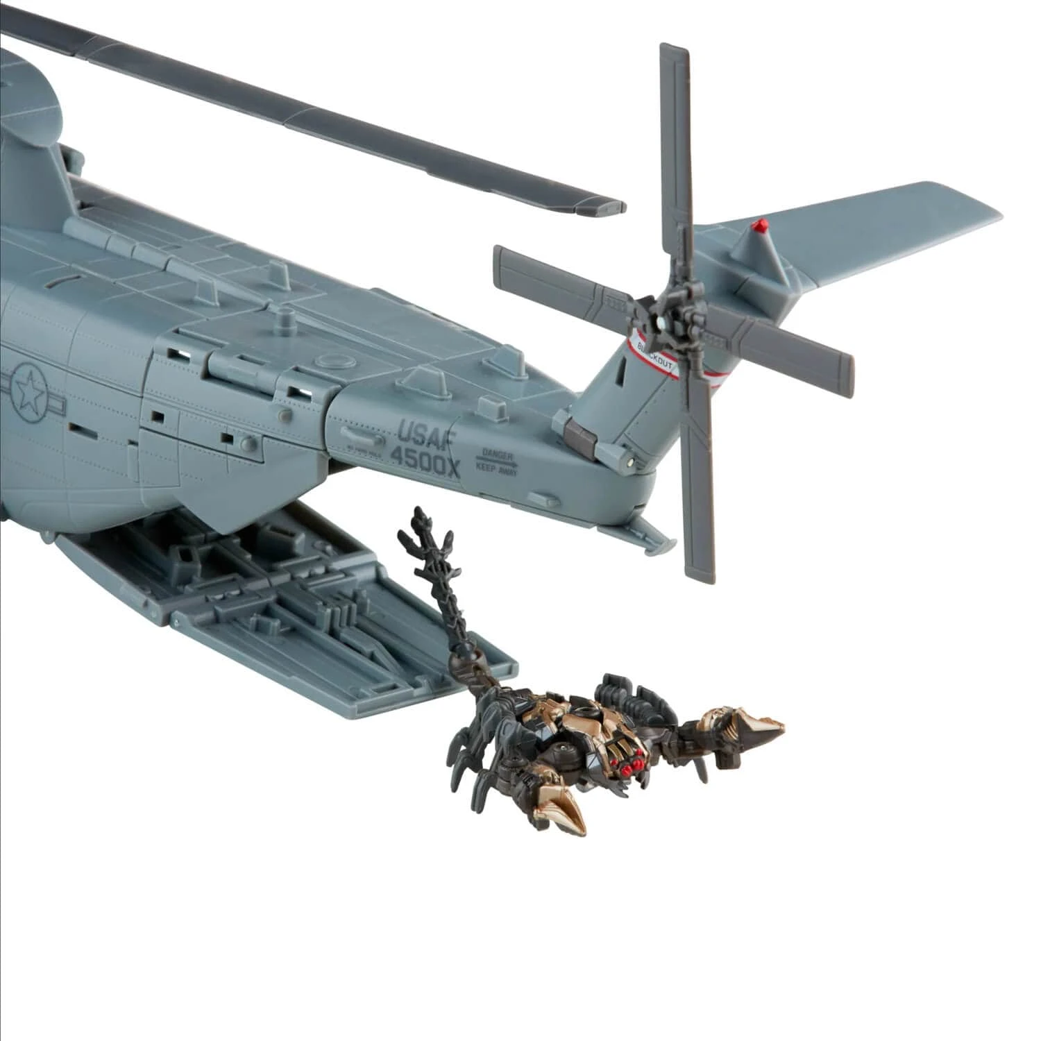 The Decepticon Blackout figure converts between robot and helicopter modes in 88 steps. With die-cast parts and over 50 points of articulation it’s perfect for pose and display.