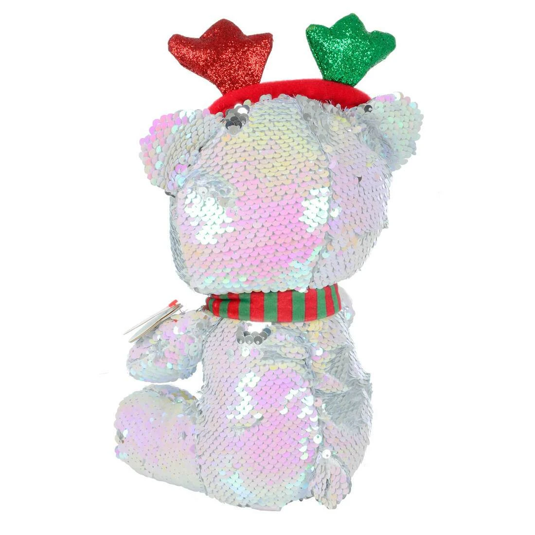 This large Ty Flippables Christmas theme plush has sequins which you can flip over to reveal iridescent sparkling colours on the other side. Each figure has large glitter eyes and sparkling detail.