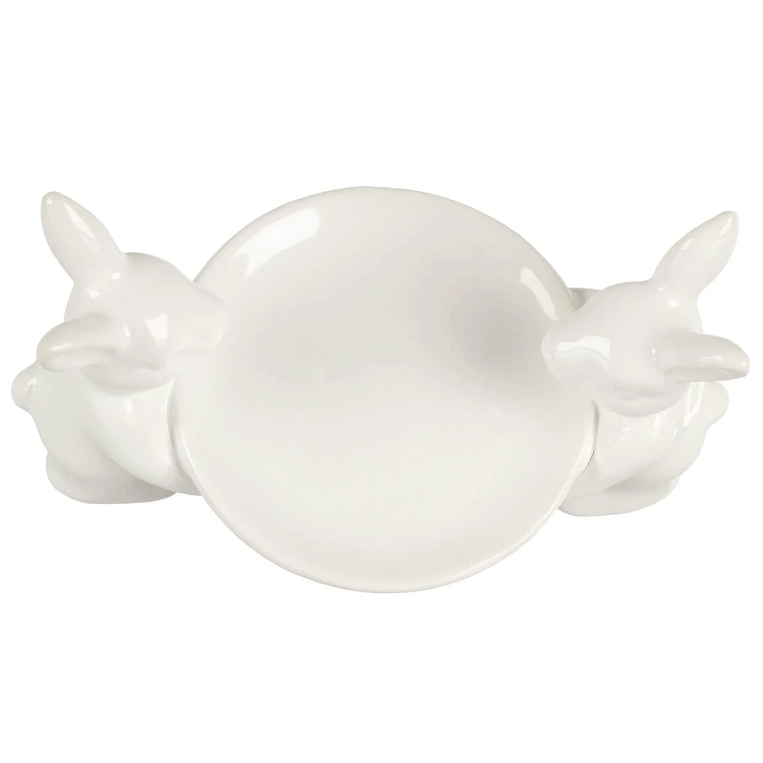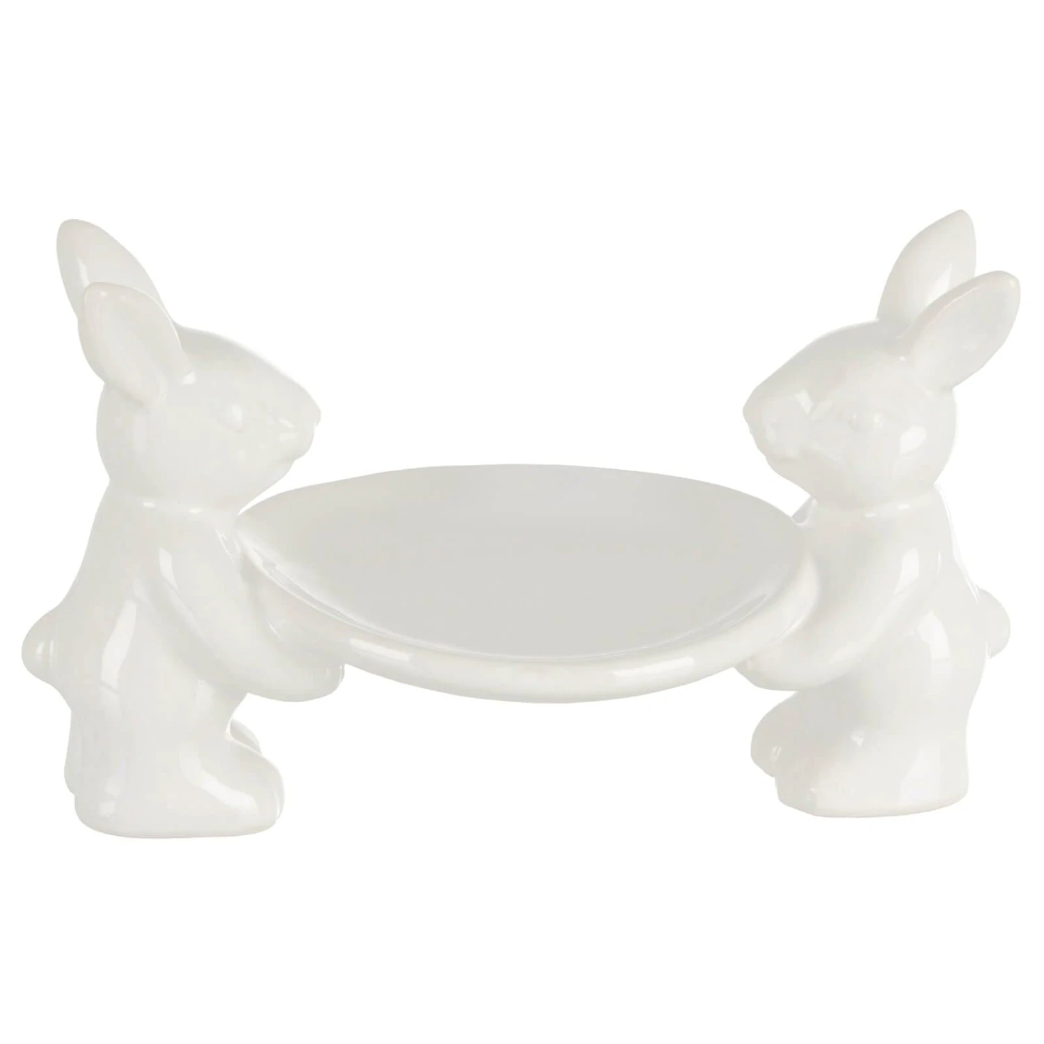 The pair of cute Easter bunnies carry a plate with a diameter of 10cm (4″).